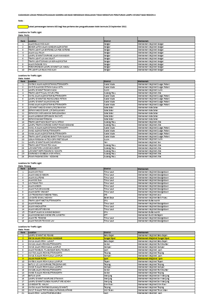 Cadangan Lokasi Pemasangan Kamera Aes Lampu Isyarat Region A