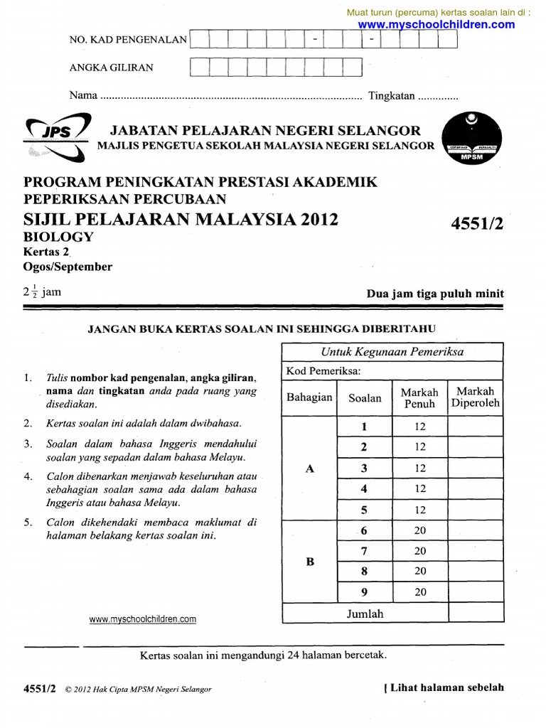 Myschoolchildren Bio K23 Trial Spm 2012 Selangor