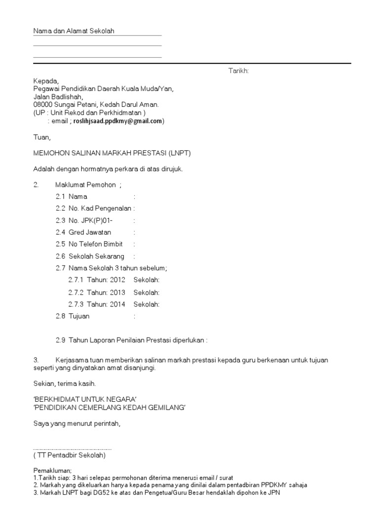 Surat Mohon Markah Prestasi 2015
