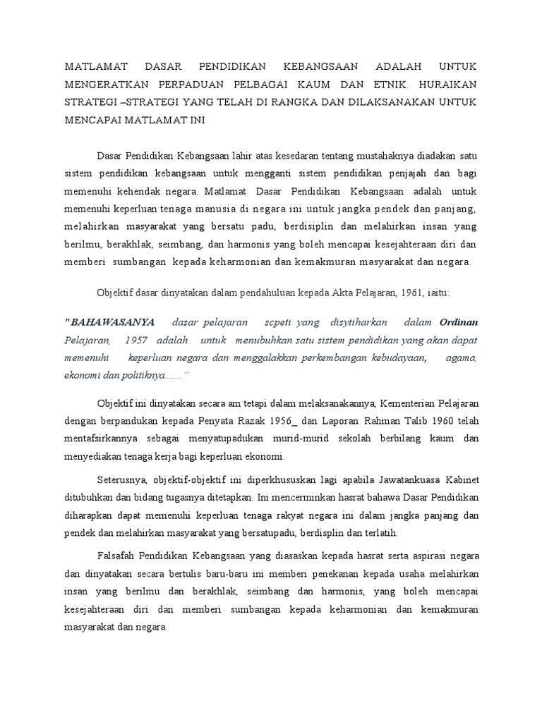 Matlamat Dasar Pendidikan Kebangsaan Adalah Untuk Mengeratkan Perpaduan Pelbagai Kaum Dan Etnik