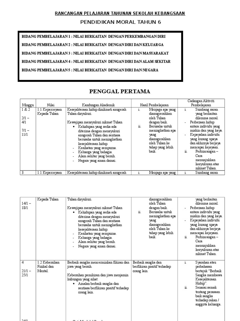 Download Rpt Pendidikan Moral Tahun 6 Menarik Moral Tahun 6 Skoloh