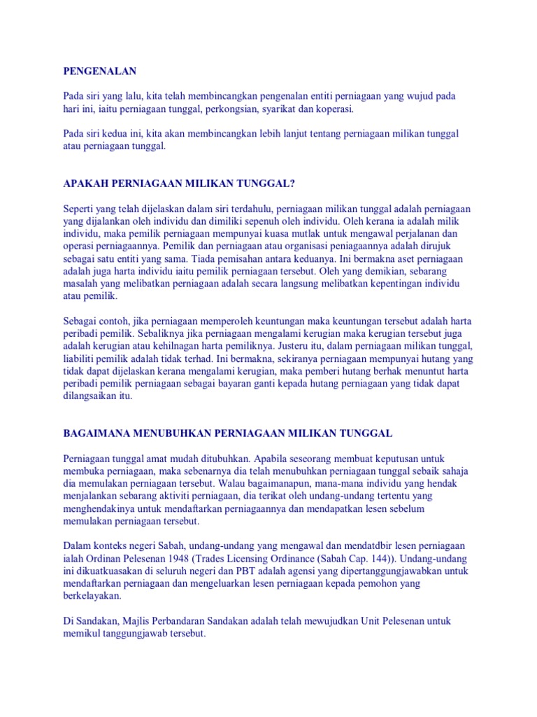 Milikan Tunggal Jenis Jenis Lesen Perniagaan