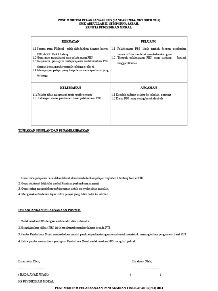 Post Mortem Pelaksanaan Pbs Dan Pt3 P Moral