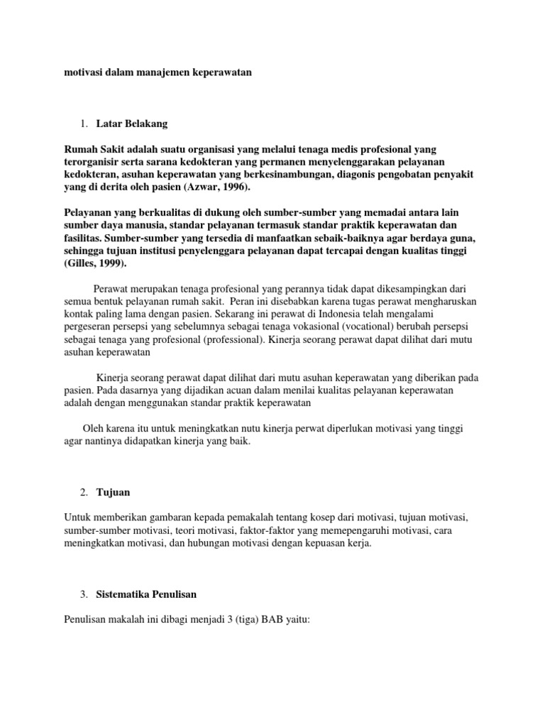Motivasi Dalam Manajemen Keperawatan