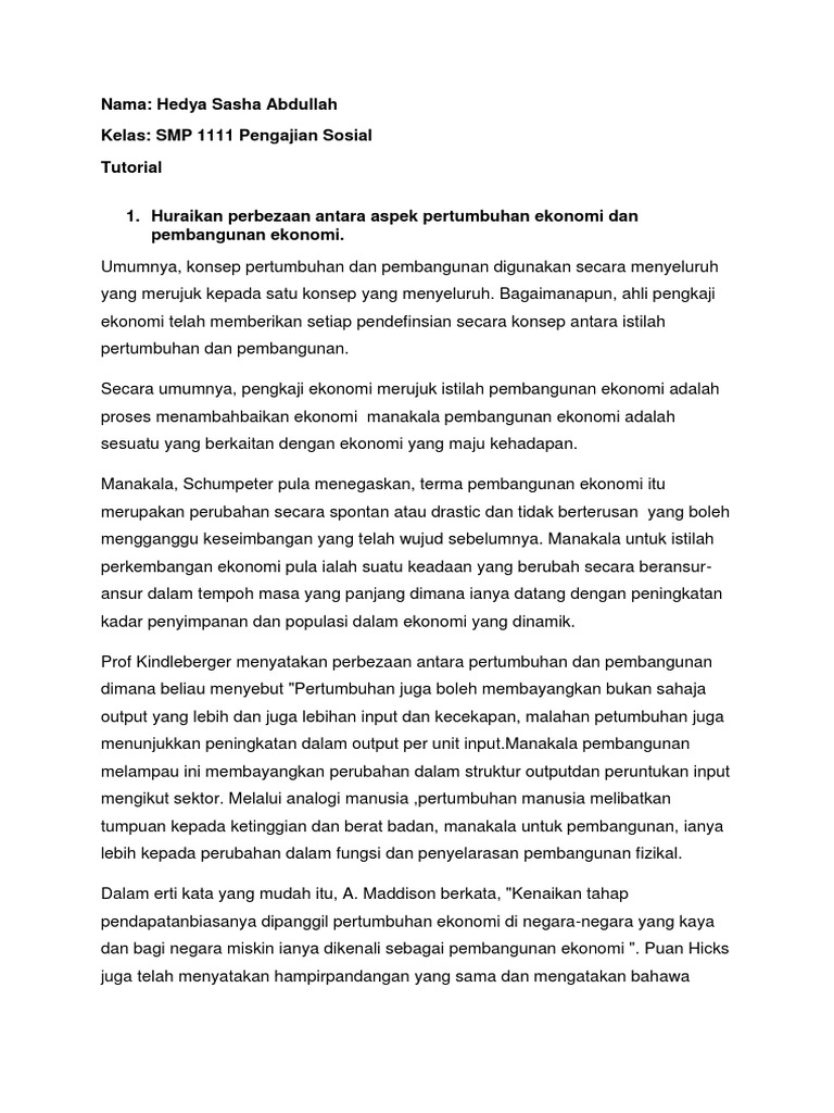 Huraikan Perbezaan Antara Aspek Pertumbuhan Ekonomi Dan Pembangunan Ekonomi Docx