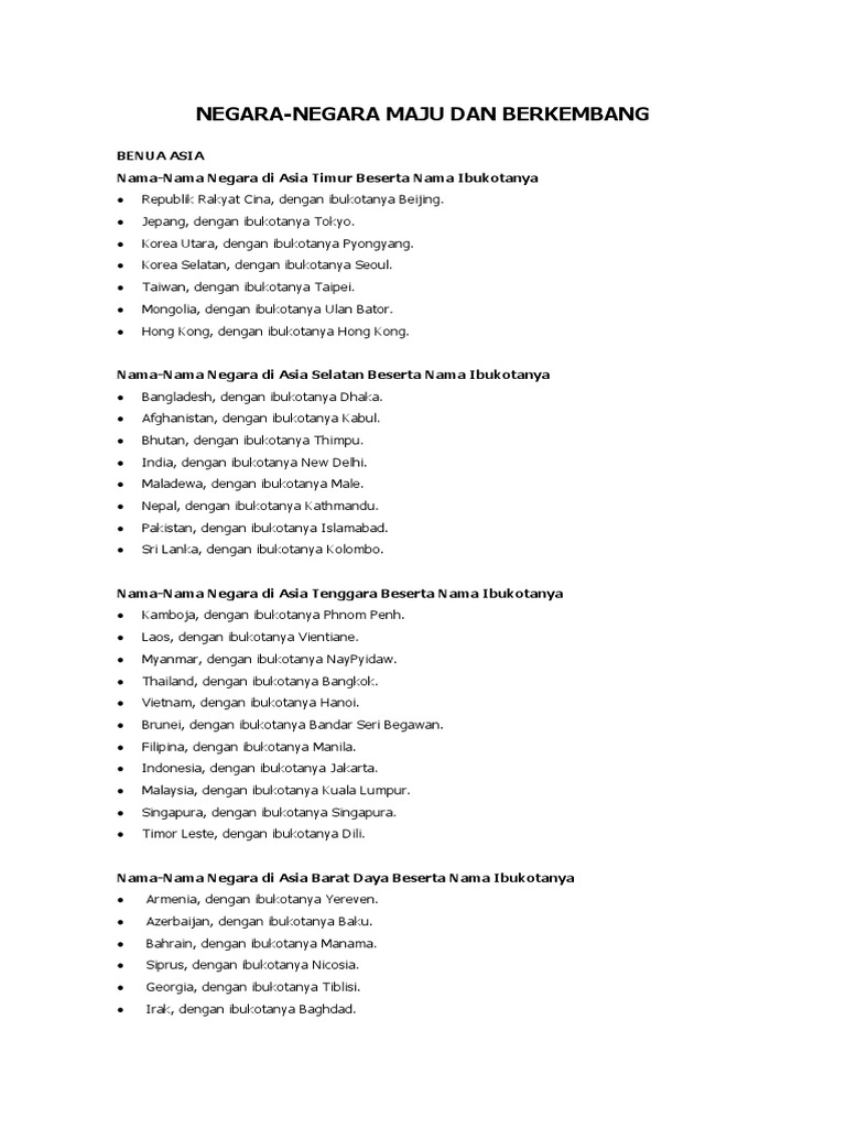 Negara Negara Di Benua Asia Beserta Ibukotanya
