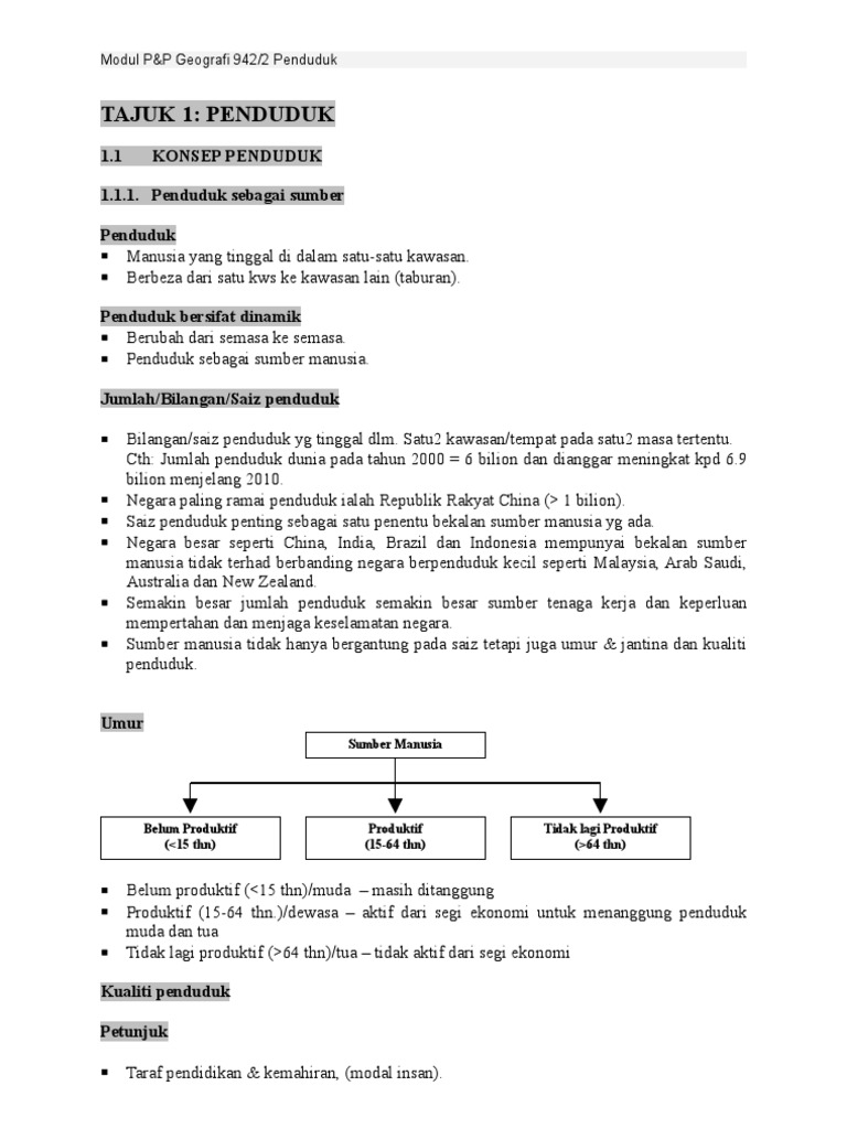 Modul P P Geografi Stpm Tema 1 Penduduk