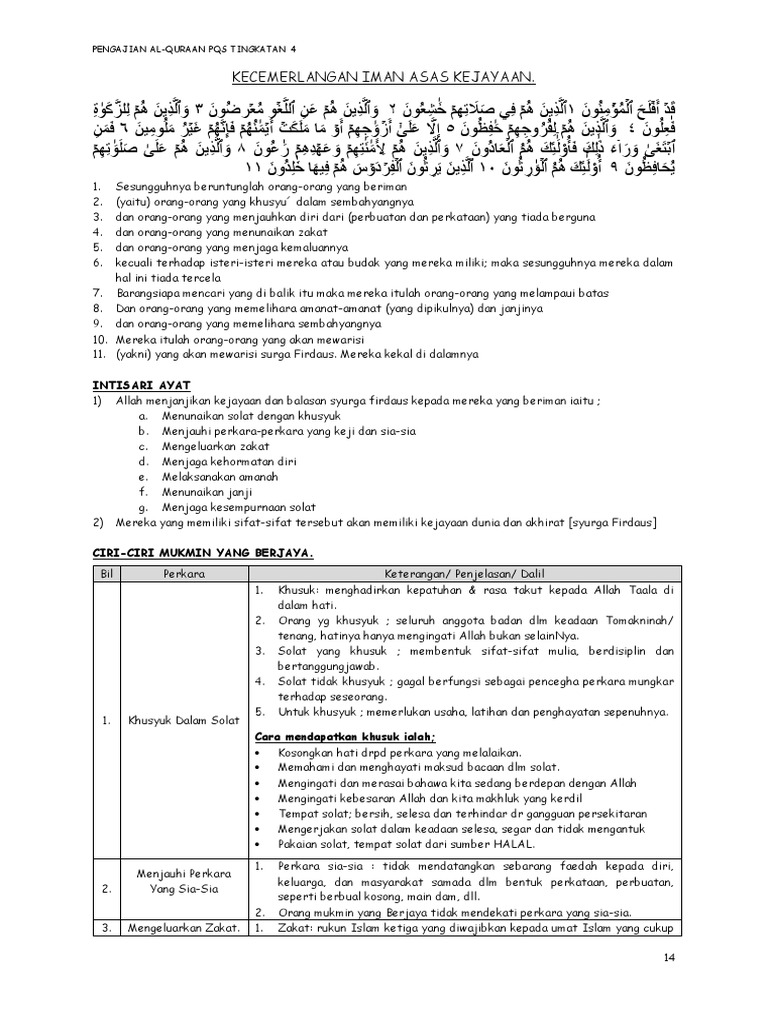 Nota Pqs Tingkatan 4 Kecemerlangan Iman Asas Kejayaan