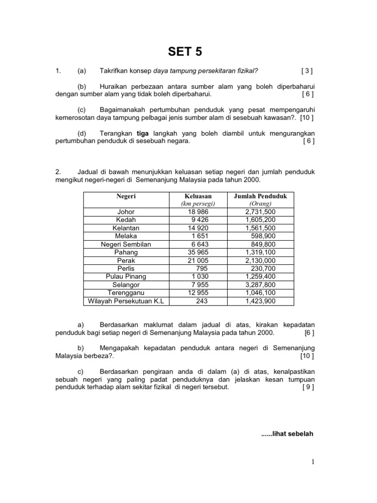 Geografi Alam Sekitar Manusia Stpm Penduduk