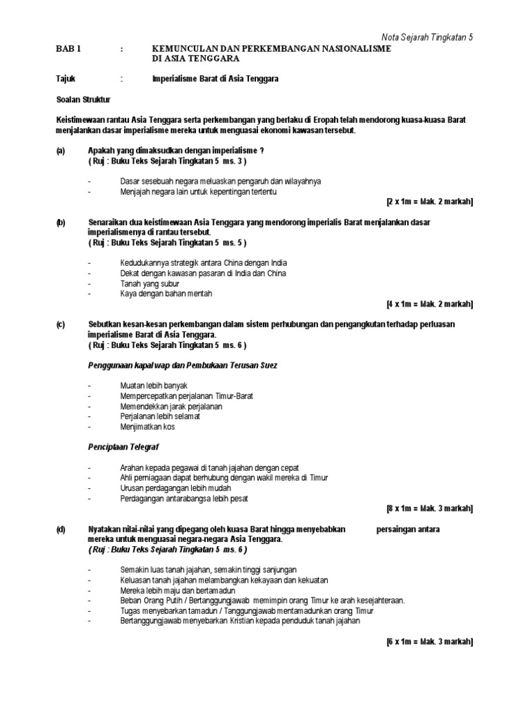 Nota Ringkas Sejarah Tingkatan 5 Spm Bab 5