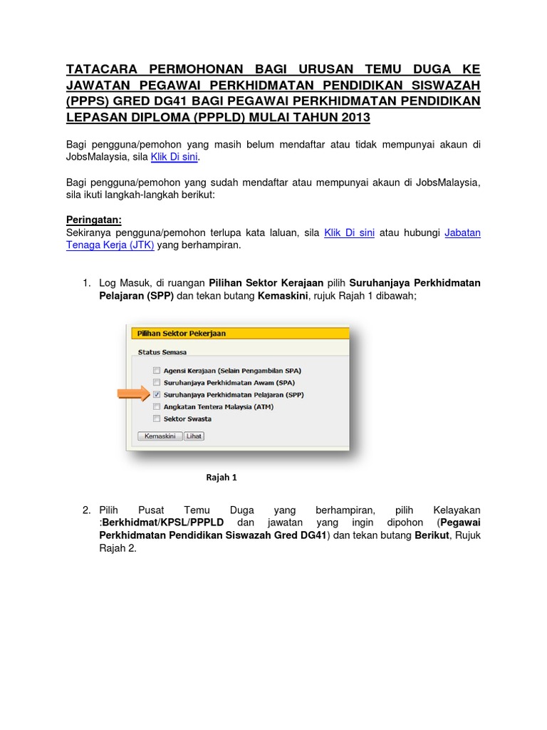 Tatacara Permohonan Bagi Urusan Temu Duga Ke Jawatan Pegawai Perkhidmatan Pendidikan Siswazah Ppps Gred Dg41 Bagi Pegawai Perkhidmatan Pendidikan Lepasan Diploma Pppld Mulai Tahun 2013