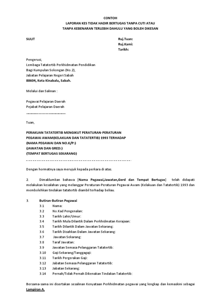 Contoh Laporan Kes Tidak Hadir Bertugas Dpt Dikesan