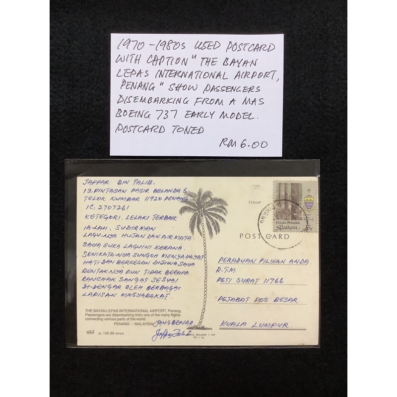 1970 1980s Used Postcard With Caption The Bayan Lepas International Airport Penang Shopee Malaysia