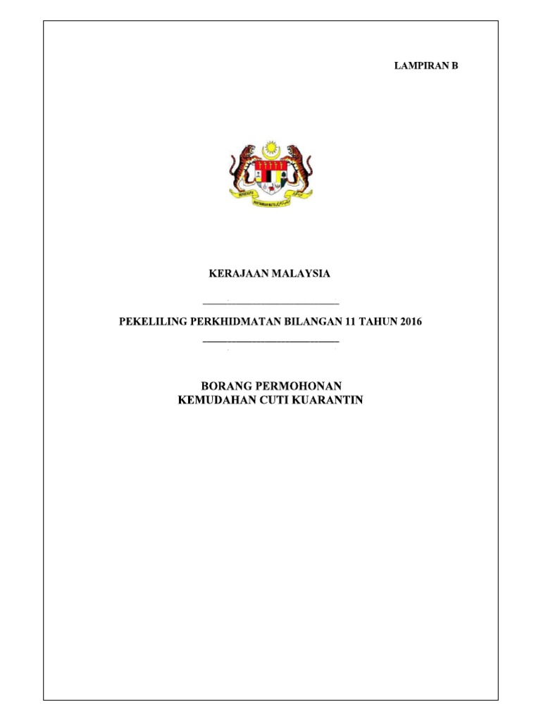 Cuti Kuarantin Pekeliling Perkhidmatan Bilangan 11 Tahun 2016 Pdf
