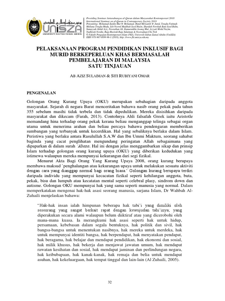 Pdf Program Pendidikan Inklusif Bagi Murid Murid Berkeperluan Khas Di Malaysia Saiful Azam Academia Edu