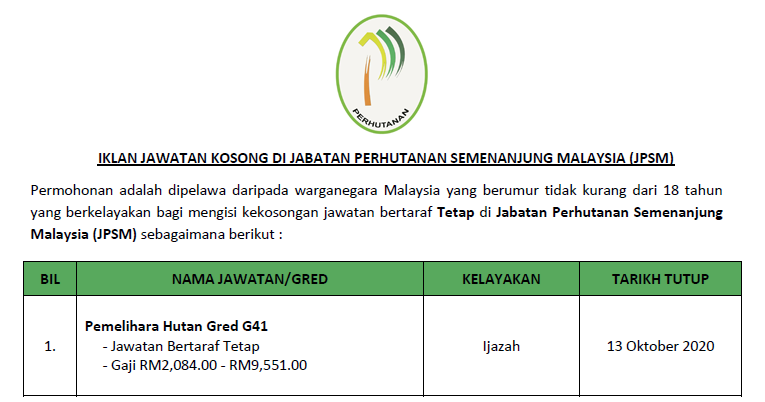 Permohonan Jawatan Kosong Di Jabatan Perhutanan Semenanjung Malaysia Jpsm