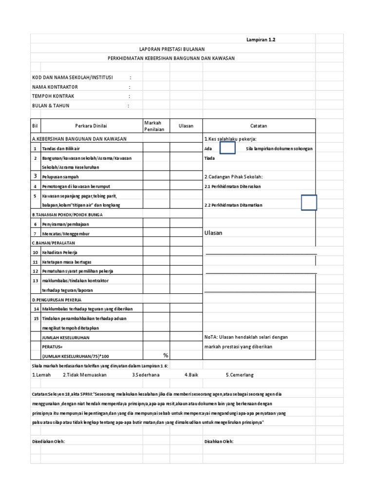 Borang Penarafan Kebersihan Tandas Sekolah Ppd Bachok