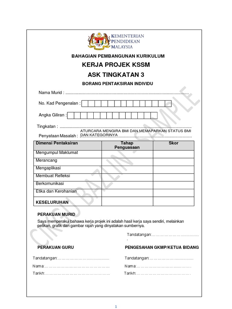 Kerja Projek Kssm Ask Tingkatan 3 Bahagian Pembangunan Kurikulum