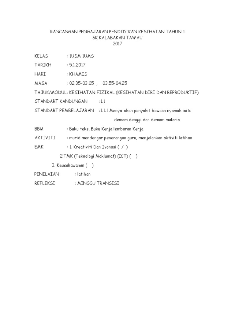 Pdf Rancangan Pengajaran Harian Pendidikan Kesihatan Kssr Tahun 3 Victoria Carl M Academia Edu