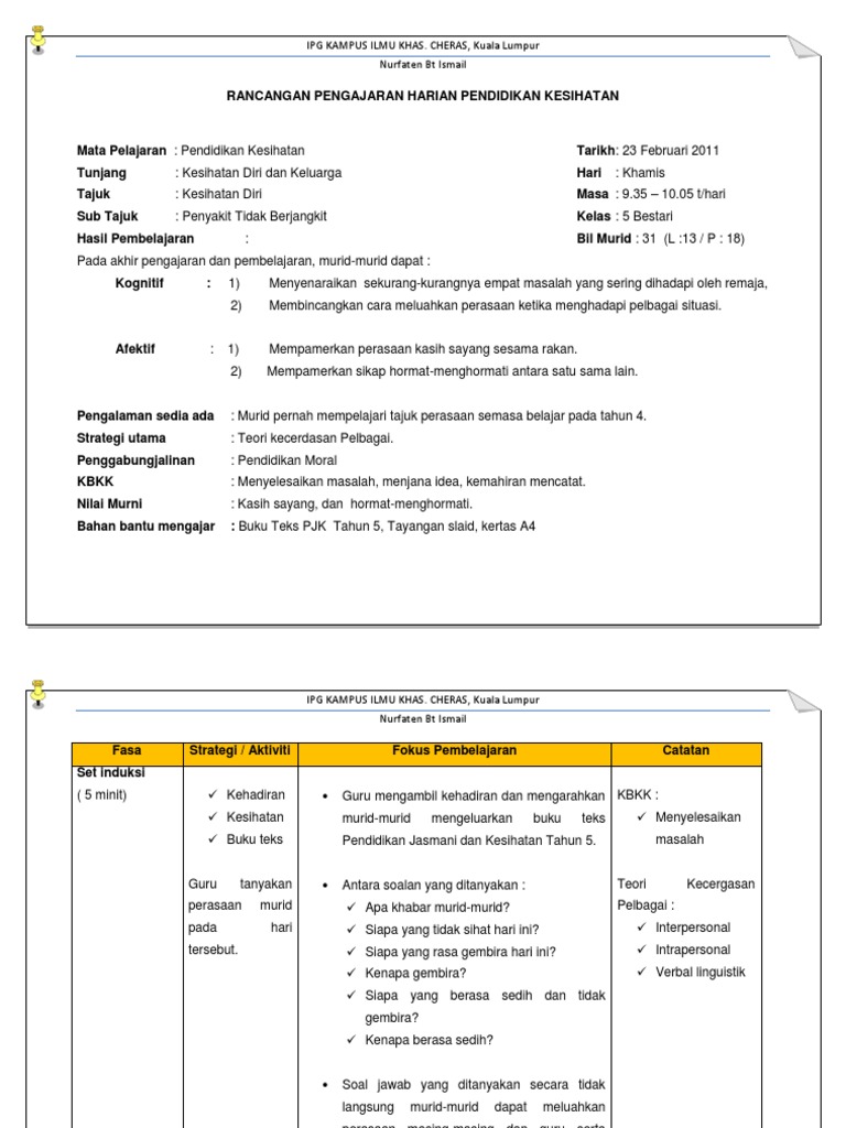 Rph Pendidikan Kesihatan Tahun 5 Sumber Pendidikan