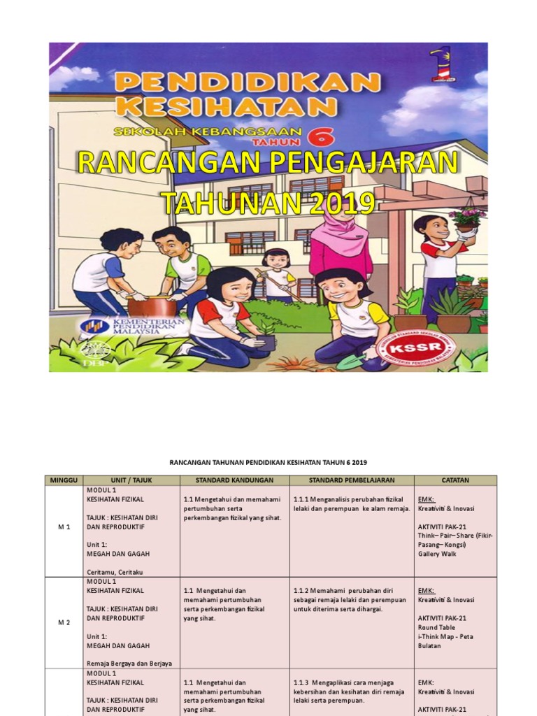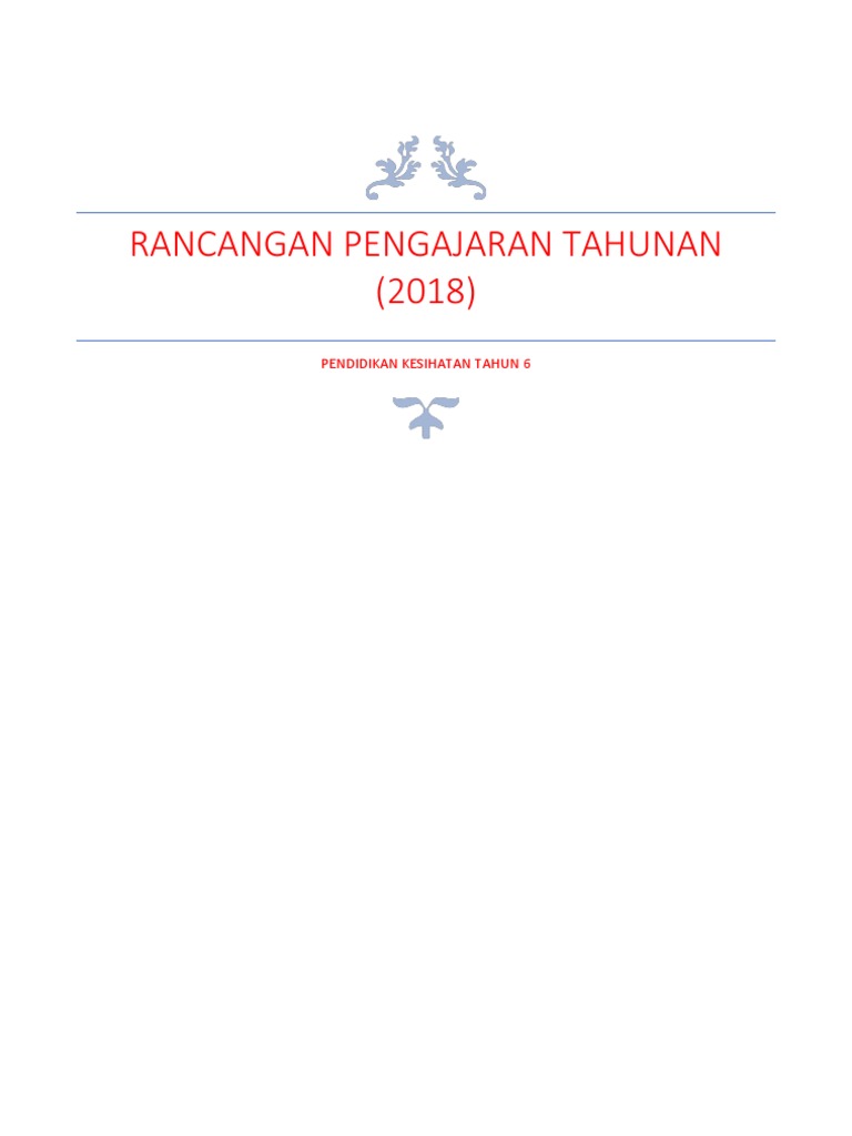 Rancangan Pengajaran Tahunan 2018 Pendidikan Kesihatan Tahun 6