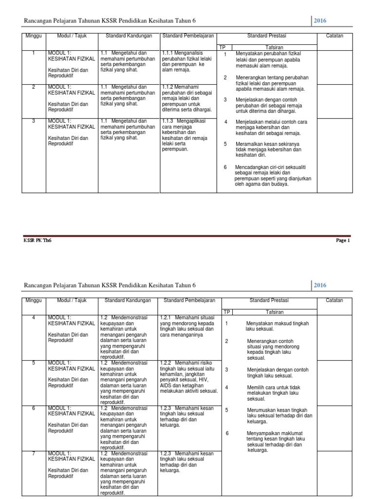 Rpt Kssr Tahun 6 Pendidikan Kesihatan Docx