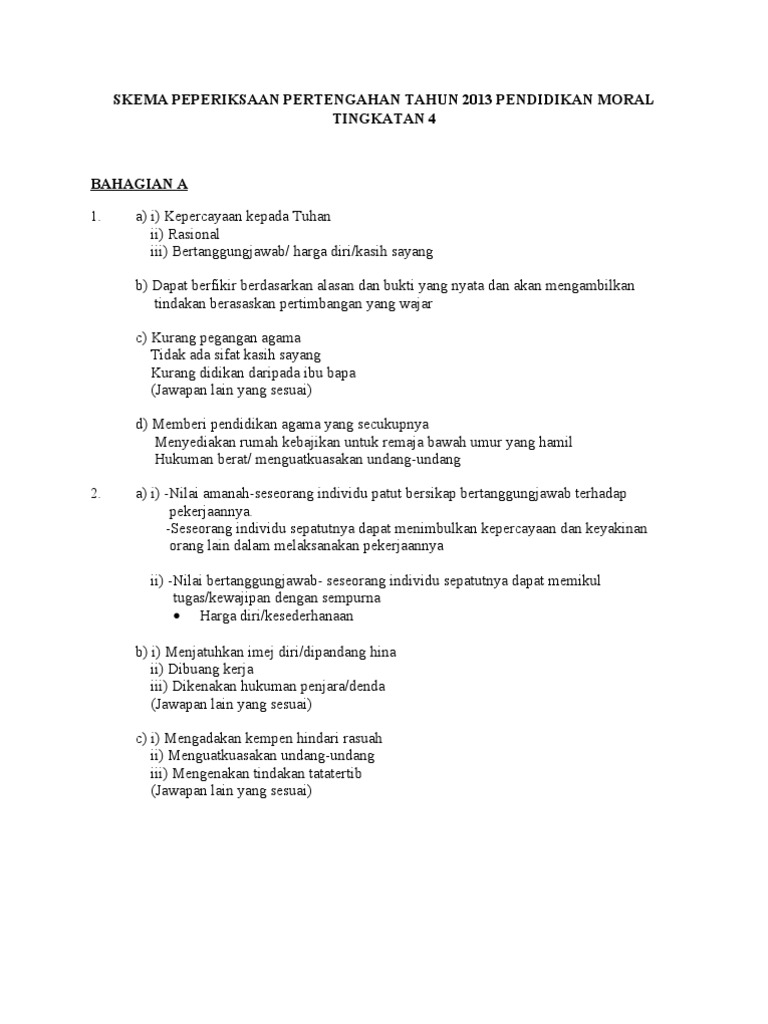 Moral Di Malaysia 4 Kertassoalaniniakandikumpulsemulapadaakhirpeperiksaan Pilih Satu 1 Nilai Daripada Huraian Sukatan Pelajaran Pendidikan Moral Tingkatan Tiga Pdf Document