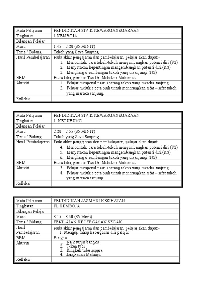 Rancangan Tahunan Pendidikan Sivik Dan Kewarganegaraan Tingkatan Satu