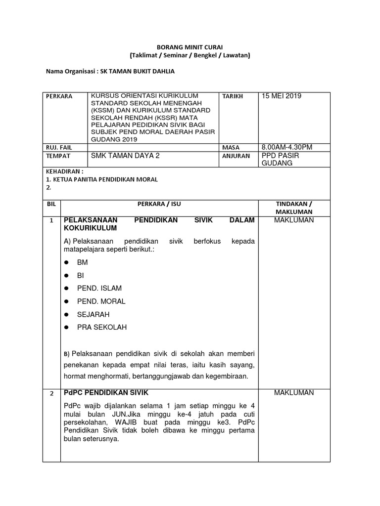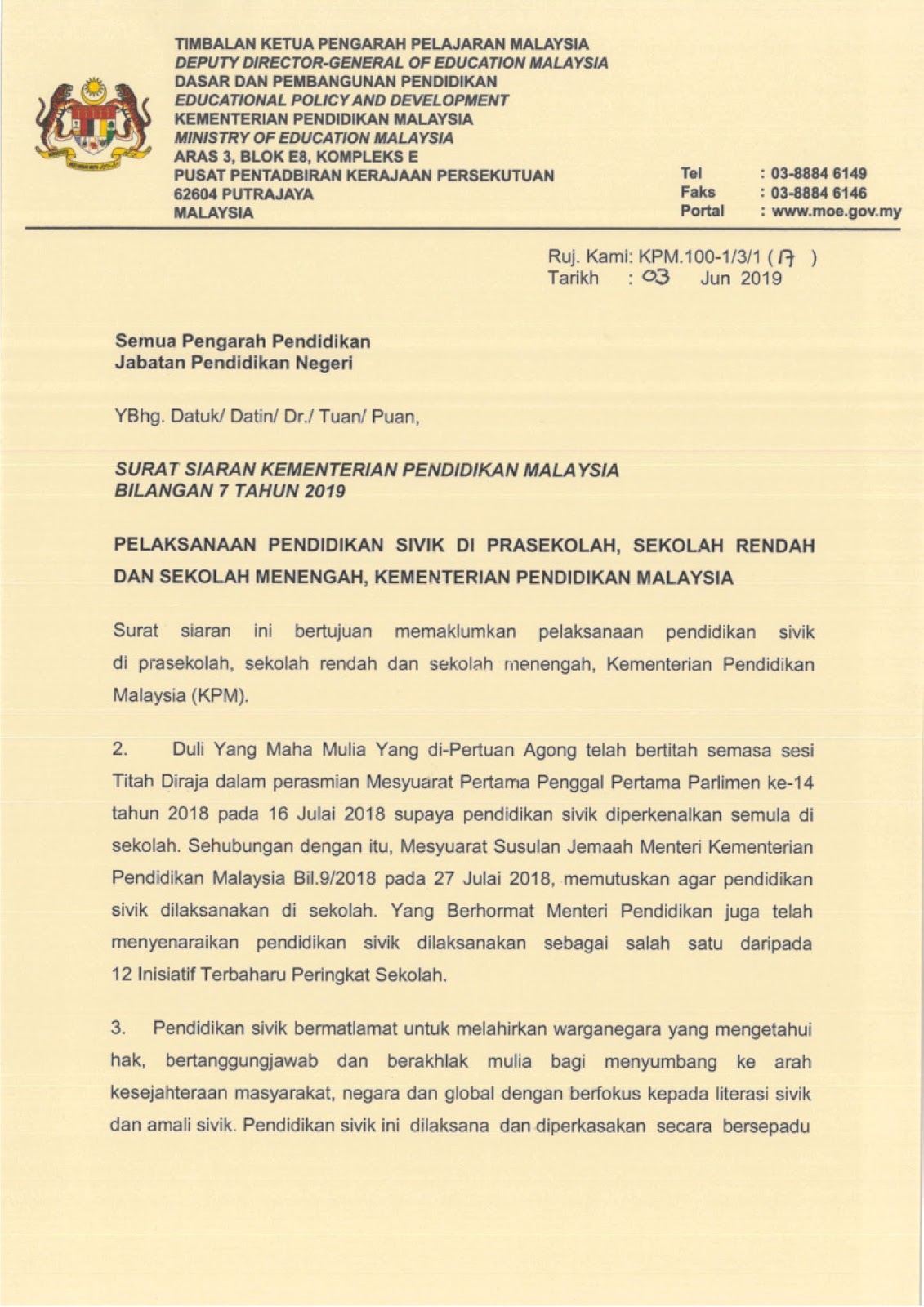 Perkongsian Pelaksanaan Pendidikan Sivik Peringkat Kebangsaan 2019 Pengumuman Kpm Kgm
