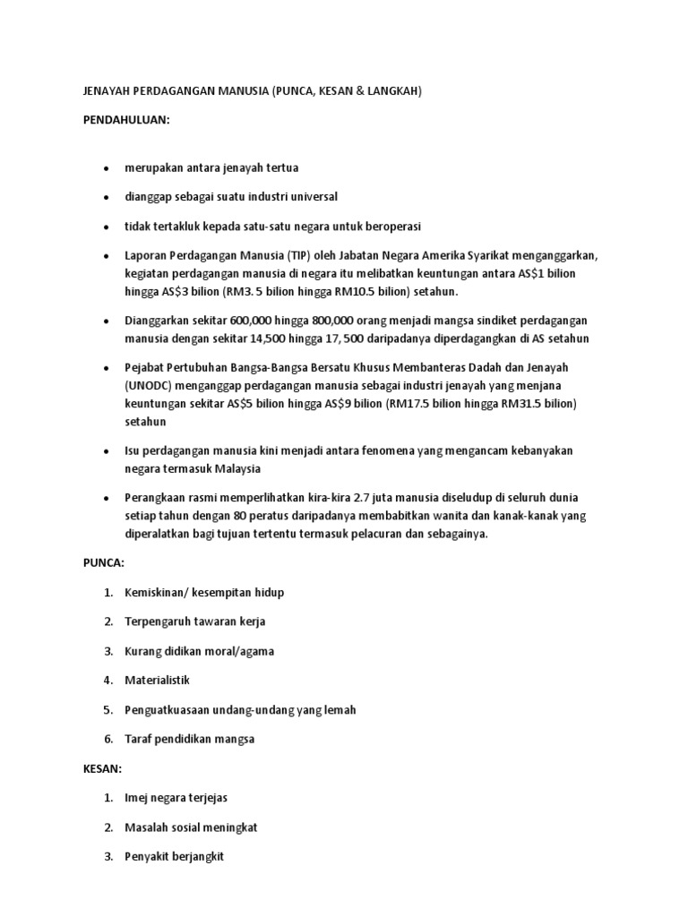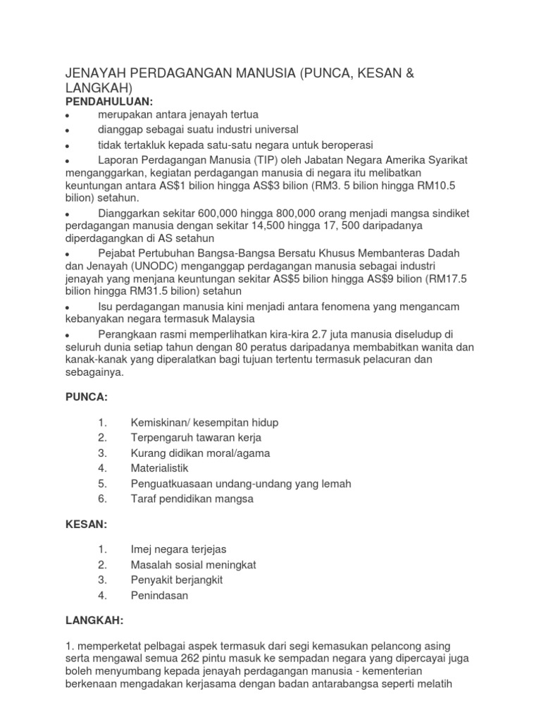Jenayah Perdagangan Manusia Punca Kesan Langkah Pendahuluan