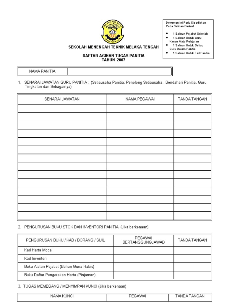 Borang Agihan Tugas Panitia 2007