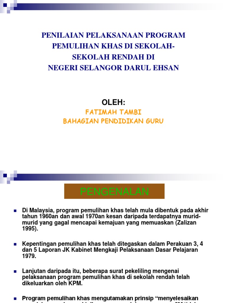 Penilaian Pelaksanaan Program Pemulihan Khas