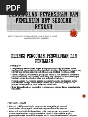 Pengenalan Petaksiran Dan Penilaian Rbt Sekolah Rendah