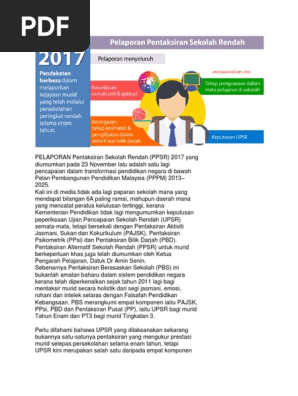2 panduan ini merupakan edisi kemas kini kepada buku panduan pelaksanaan pentaksiran sekolah yang diterbitkan oleh bahagian pembangunan kurikulum pada tahun 2016. Perbezaan pentaksiran bilik darjah pbd pentaksiran berasaskan sekolah pbs 16 22 00 pbd pbs pentaksiran berasaskan sekolah pentaksiran bilik darjah pentaksiran bilik darjah pbd merupakan pentaksiran yang berterusan dalam sesi pengajaran dan pembelajaran bagi mendapatkan maklumat tentang perkembangan kemajuan kebolehan dan pencapaian murid. Pelaporan pentaksiran sekolah atau akronimnya pps merupakan salah satu item dalam pelaporan sekolah daripada pentaksiran berasaskan sekolah pbs. Pentaksiran berasaskan sekolah akademik pentaksiran pusat pentaksiran sekolah bukan akademik pentaksiran aktiviti jasmani sukan dan kokurikulum pentaksiran psikometrik 11.