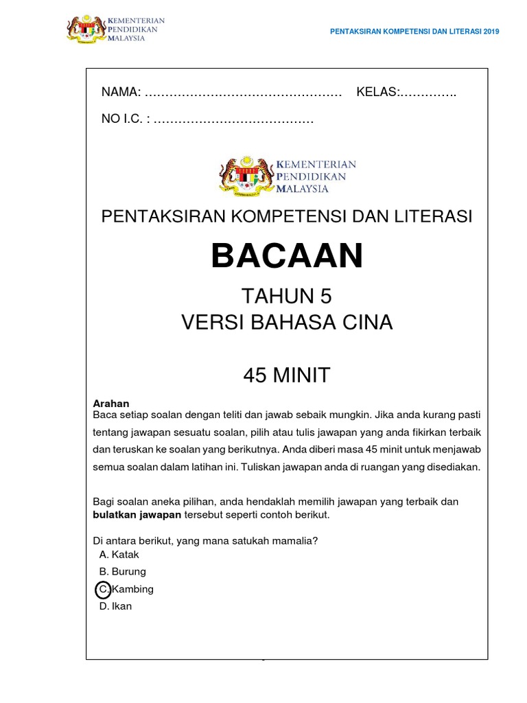 Pentaksiran Kompetensi Dan Literasi 2019 B Cikgu Eppy B