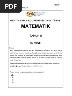 Pentaksiran Kompetensi Dan Literasi Matematik Tahun 5