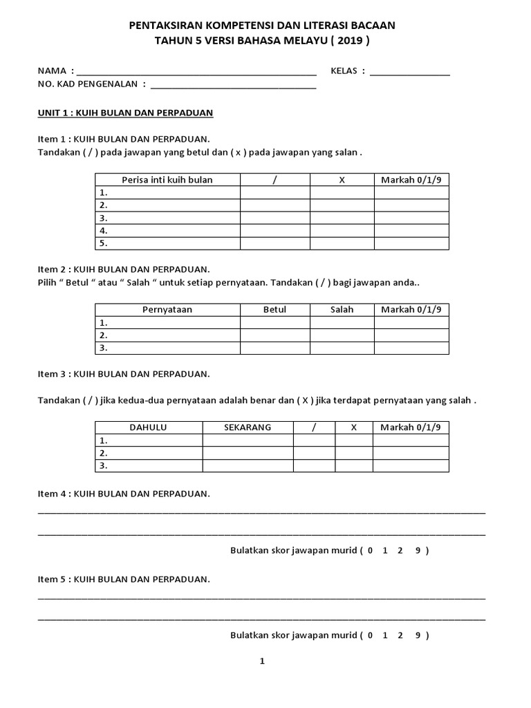 Pentaksiran Kompetensi Dan Literasi 2019 B Cikgu Eppy B