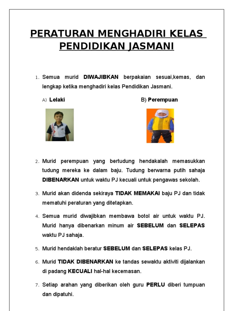 Peraturan Menghadiri Kelas Pendidikan Jasmani
