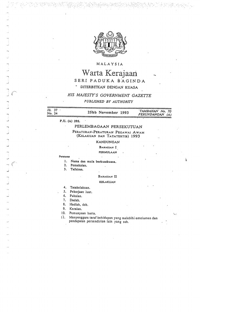 Peraturan Peraturan Pegawai Awam Kelakuan Dan Tatatertib 1993 Pdf