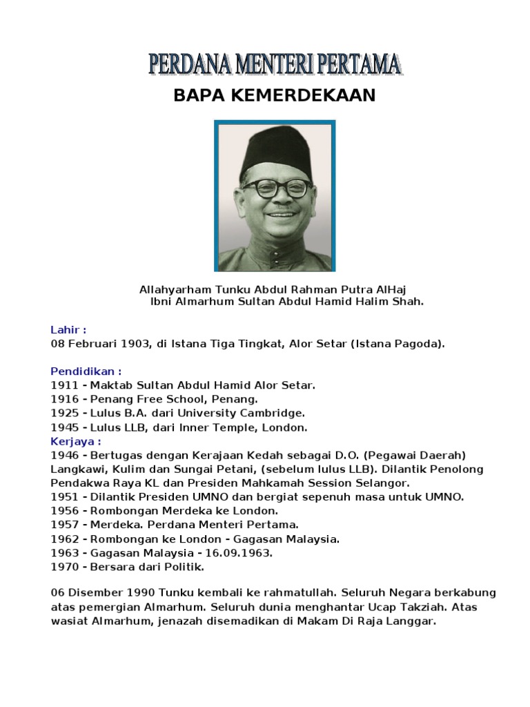 Biodata Perdana Menteri Malaysia Pertama
