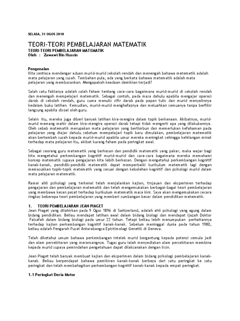Doc Perkembangan Kanak Kanak Jean Piaget Vygotsky Putih Kertas Academia Edu