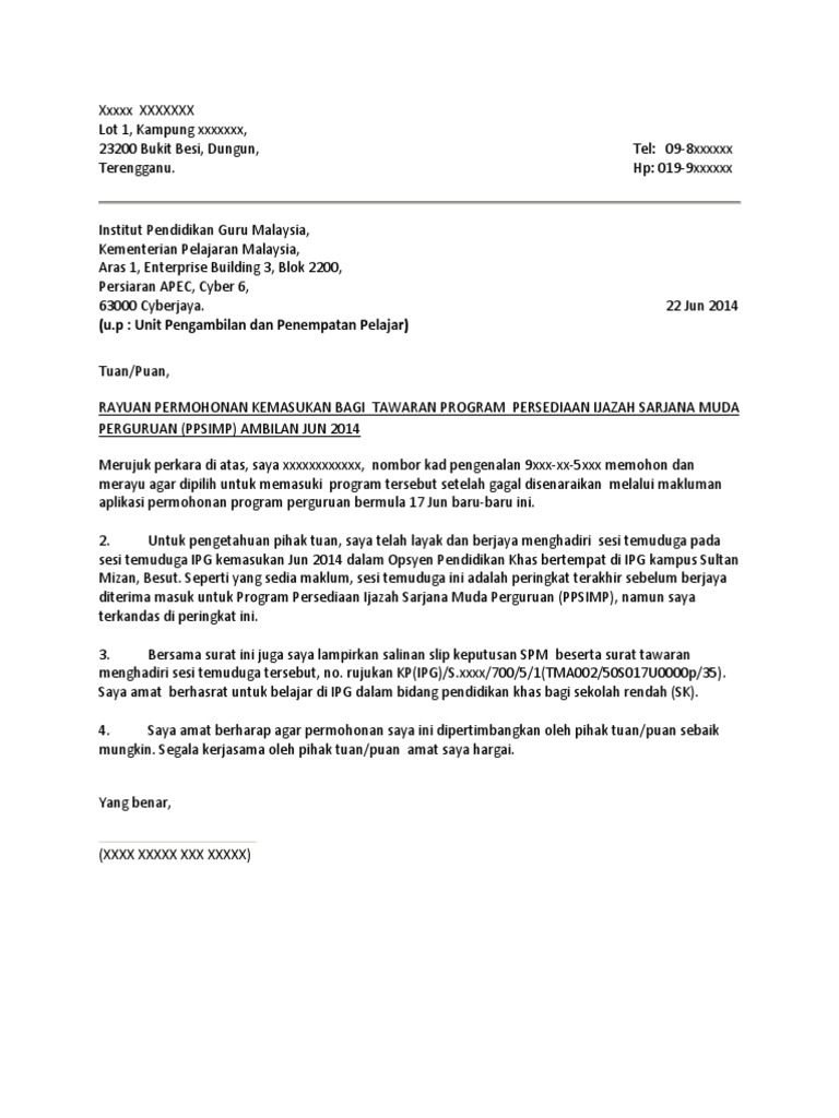 Surat Rayuan 2014 Ke Ipg Ppsimp