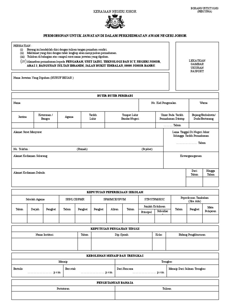 Borang Permohonan Jawatan Kerajaan Negeri Johor