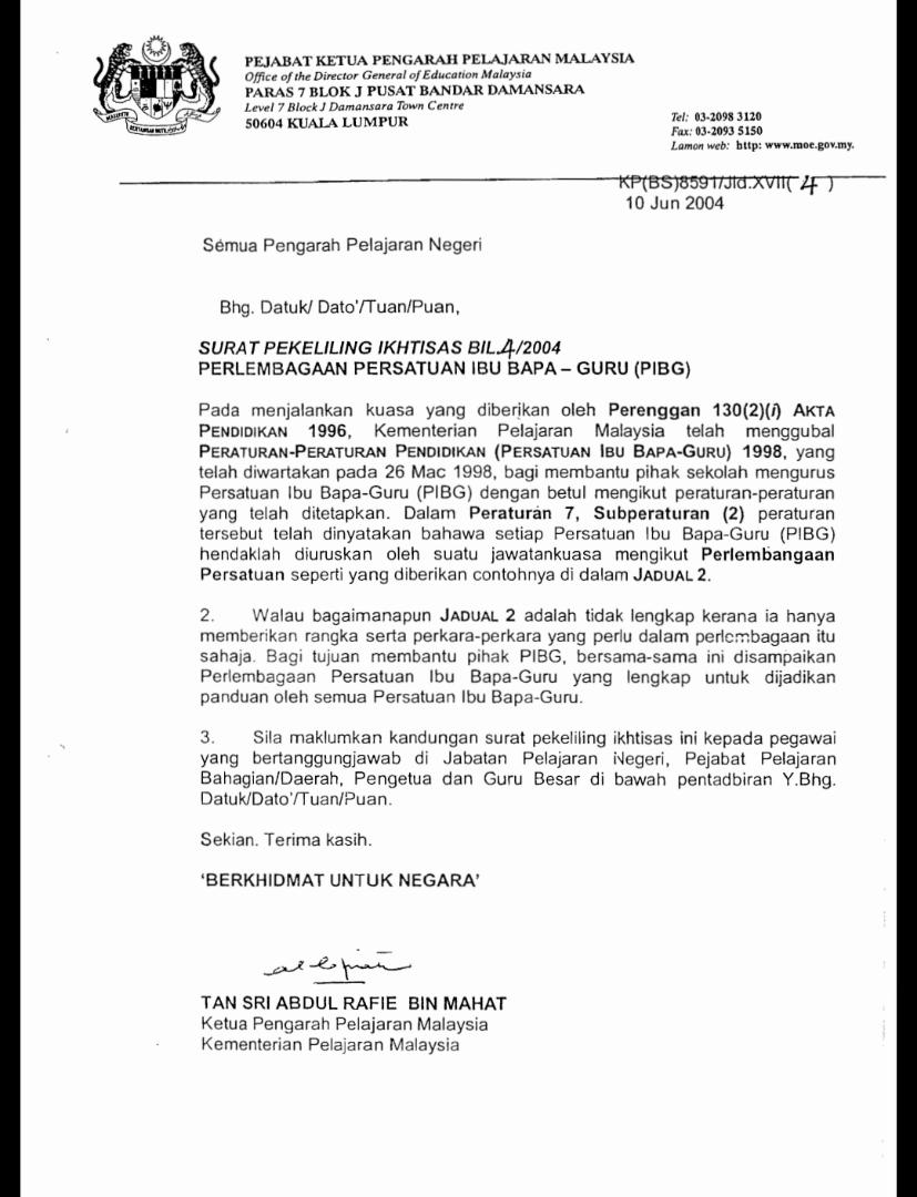 Spi Bil 05 2001 Pekeliling Batasan Kuasa Persatuan Ibu Bapa Dan Guru Pibg Di Sekolah Pekeliling Terbaru Kerajaan