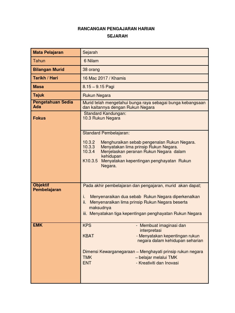 Rph Sejarah Tahun 6 The Best