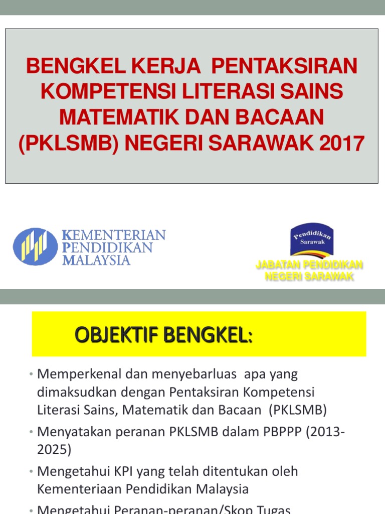Bengkel Pentaksiran Kompetensi Literasi Sains Matematik Dan Bacaan
