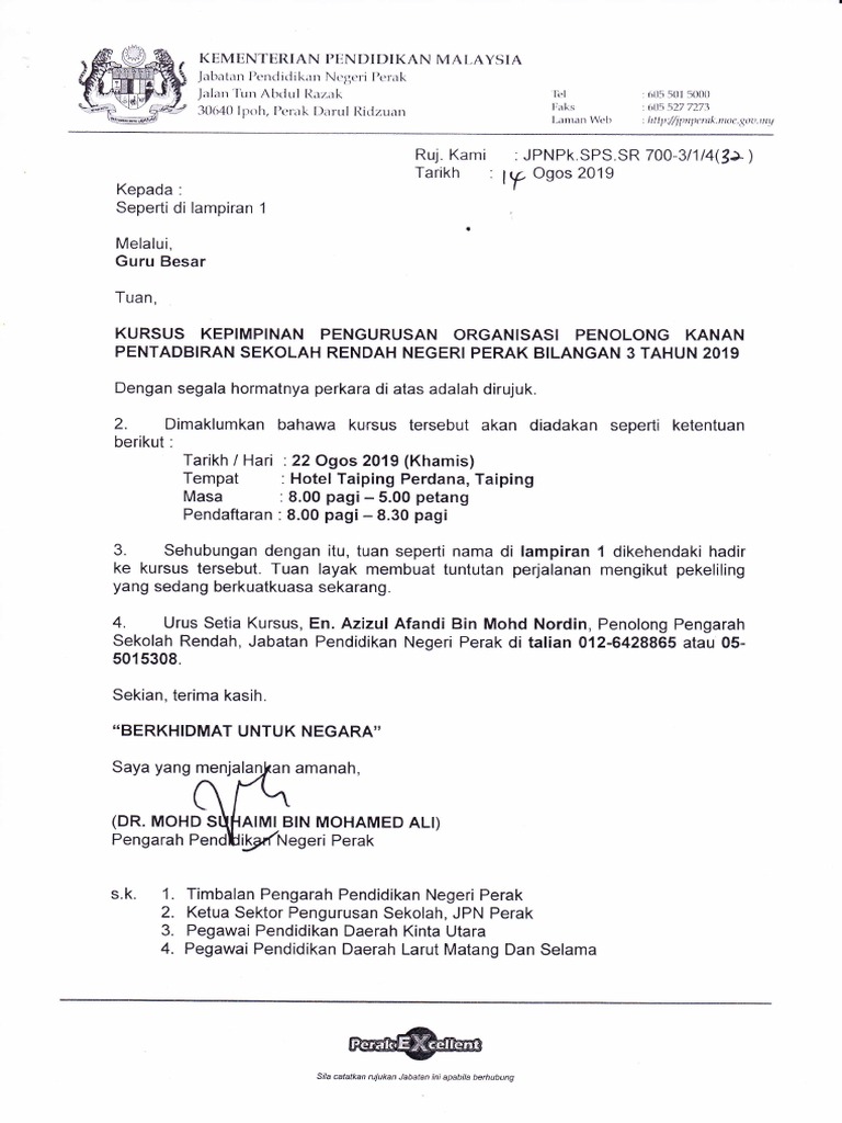 Surat Pelepasan Latihan Pusat Tenis Kinta Utara Facebook