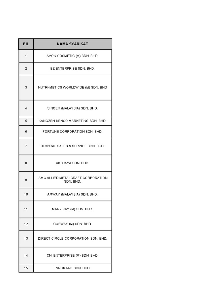 Bil Nama Syarikat Senarai Syarikat Jualan Langsung Aktif Sah Business