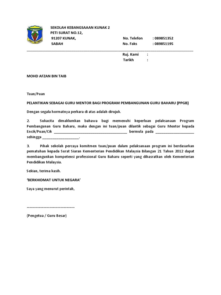 Surat Guru Mentor Ppgb