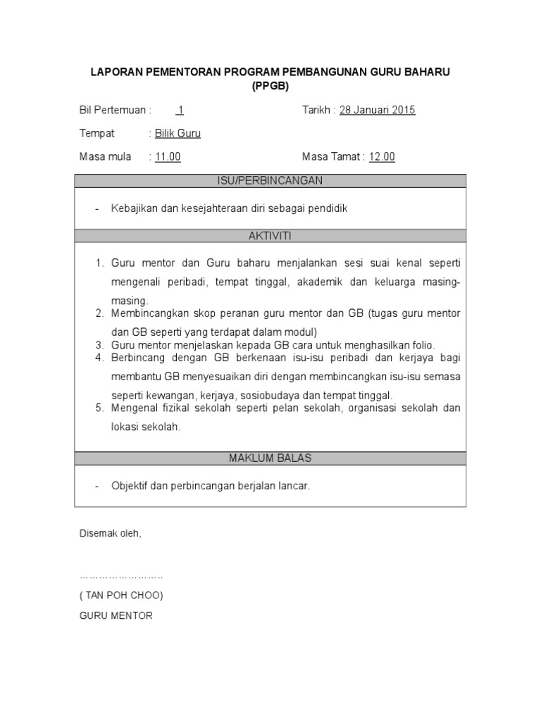 Laporan Pementoran Program Pembangunan Guru Baharu M1